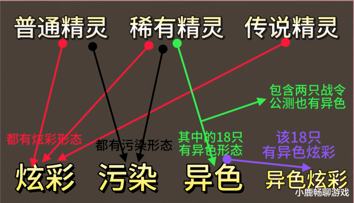 识别方面也有法门:炫彩精灵不雅察其“头顶星光”和“静止脉冲”即可;而异色精灵仅是神志不同,并无光效,两者很容易分辨。