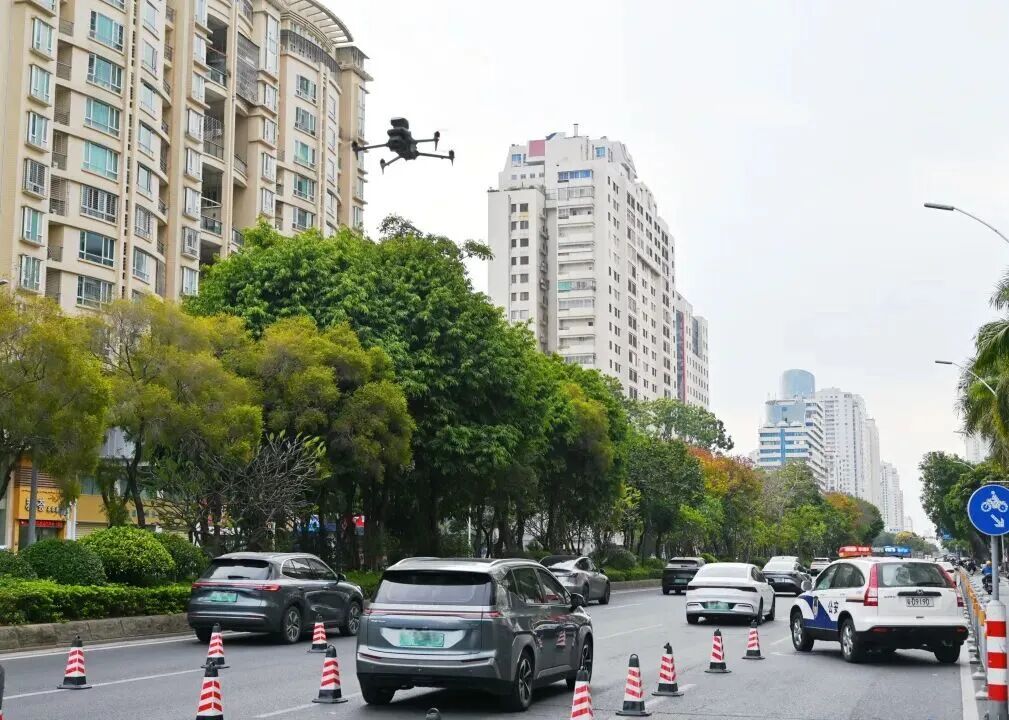 看成中,交警启用多架无东谈主机,通过“空中喊话”联接电动车驾驶东谈主安全风雅驾驶,路面交警把柄无东谈主机发现的违规信息同步张开现场查处,造成“旷地联动”+“链路式” 法则模式。