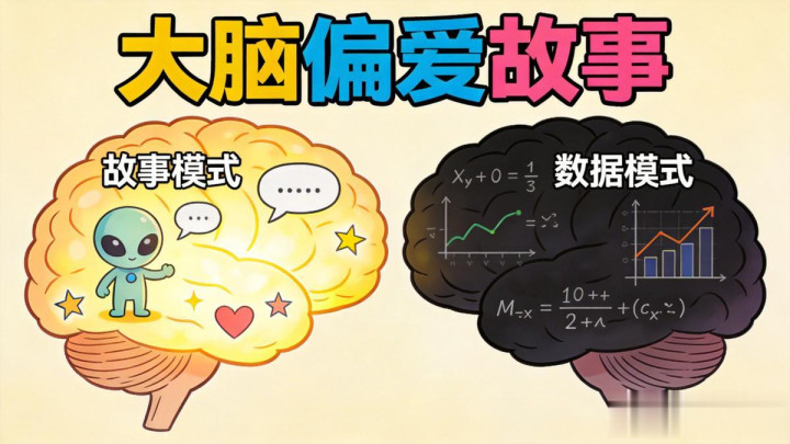 劝服科学中的"叙事传输表面"指出:东说念主类大脑自然偏疼多情节、有变装的故事,而非无聊的数据和公式。