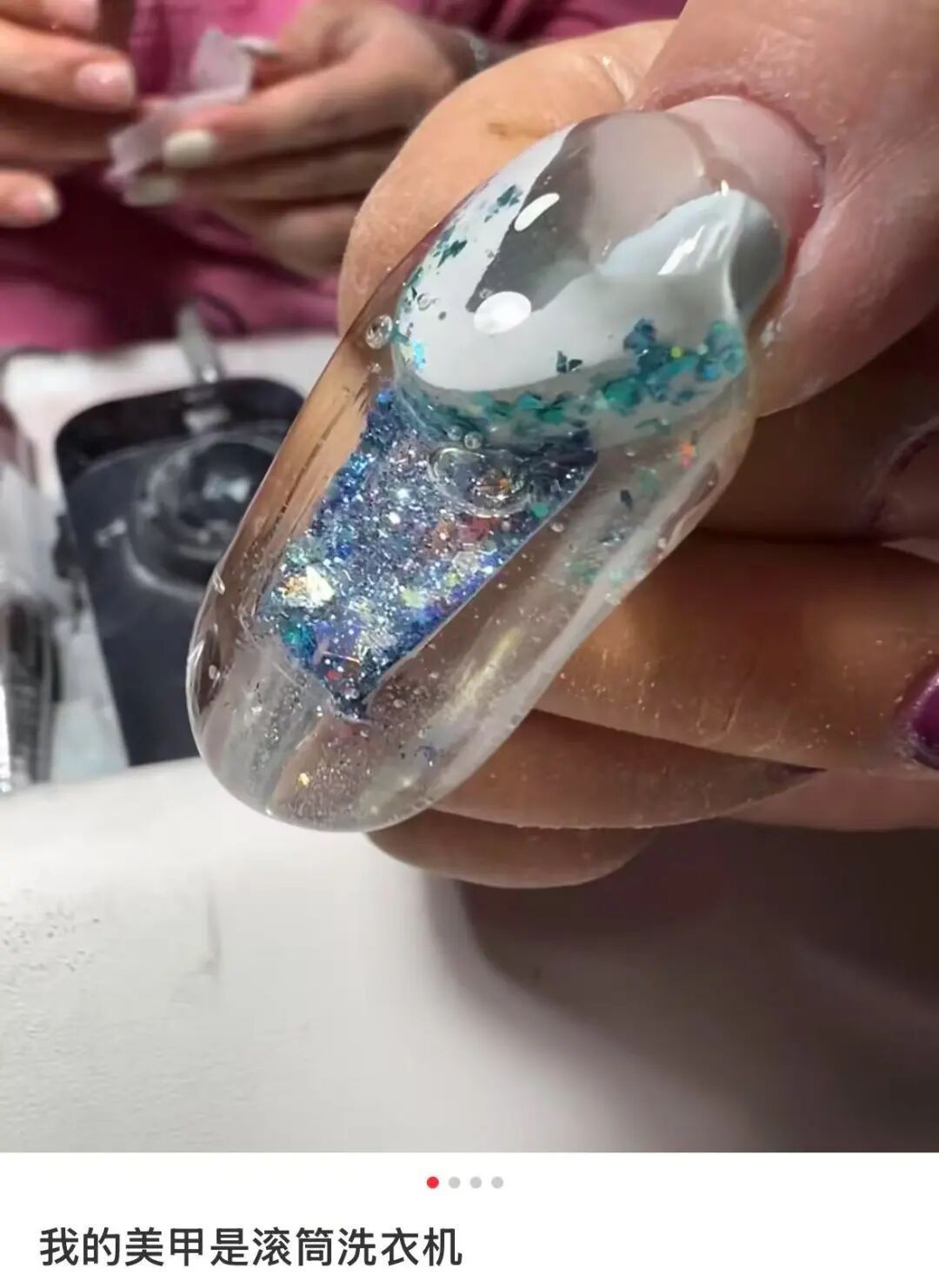 从“构建本甲”把原来扁平的指甲垫高运行,指甲上要滴多少坨甲油胶,构建出空间感,在内部填上各式颜料以致“流麻(会在内部贬抑转化的闪片)”,再照多少次紫外线灯“烤干”。